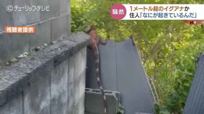 3連休の最終日、おだやかな昼下がり、住宅街に巨大なトカゲが突如現れ、騒ぎとなりました。しま模様のながーい “しっぽ” をブラブラさせ、住宅の壁をよじのぼる見慣れない生物…。いったいどこから来たのか…。よくみるとトサカのようなものも…。警察も出動して捜索しましが、謎の生物は、姿をくらましてしまいました。