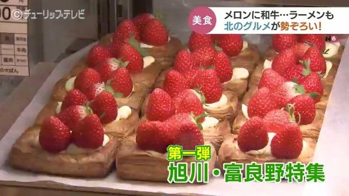 第1弾は「旭川・富良野特集」。旭川の地元で行列ができるパン店のフルーツデニッシュに富良野で育った和牛100パーセント使用のハンバーガー。