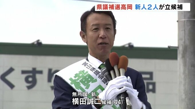 これまでに県議補選高岡市選挙区に立候補したのは、届け出順に、いずれも無所属・新人の山口泰祐候補(50)と横田誠二候補(44)の2人です。