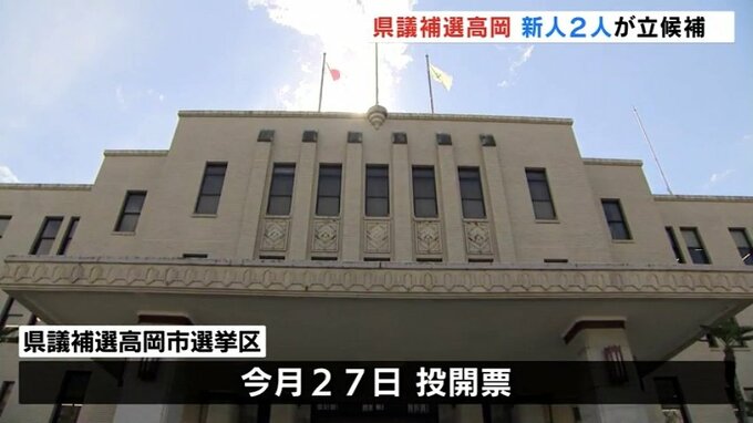 渡辺守人県議の死去に伴う富山県議会議員補欠選挙高岡市選挙区が、今月18日に告示され、これまでに前の高岡市議で新人の2人が立候補しています。