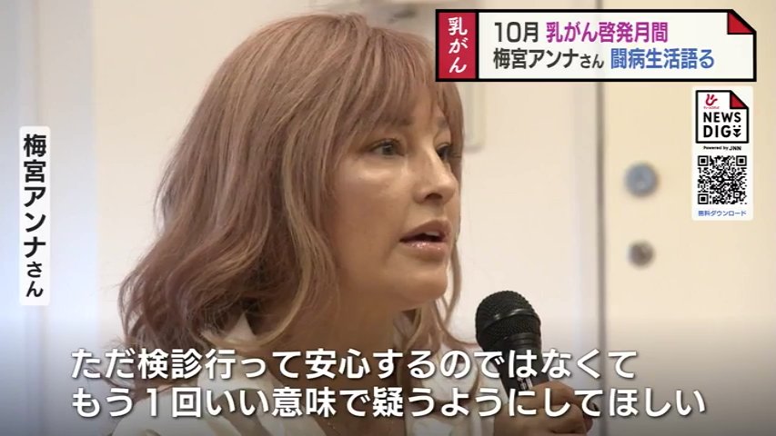 梅宮アンナさん:「乳がんって唯一体の中で自分で発見できるものであって。臓器のがんではないので。自分で発見できるっていうことも大いにあるんですけど。私のように自分で発見できないものもあるんですね。ただ検診行って安心するのではなくてもう一回いい意味で疑うようにしてほしいなと思います」