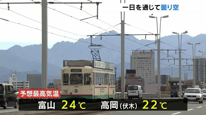 また、日中の最高気温は富山で24℃、高岡市の伏木で22℃と平年を2、3℃上回る予想です。