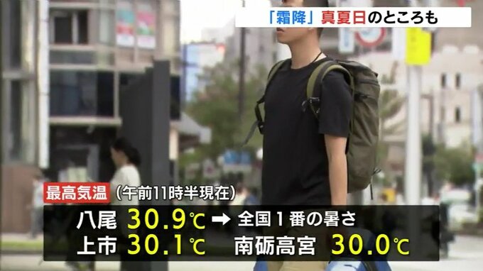 23日は二十四節気の「霜降」ですが富山県内は朝から気温が上がり、真夏日になるところがあるなど季節外れの暑さになっています。