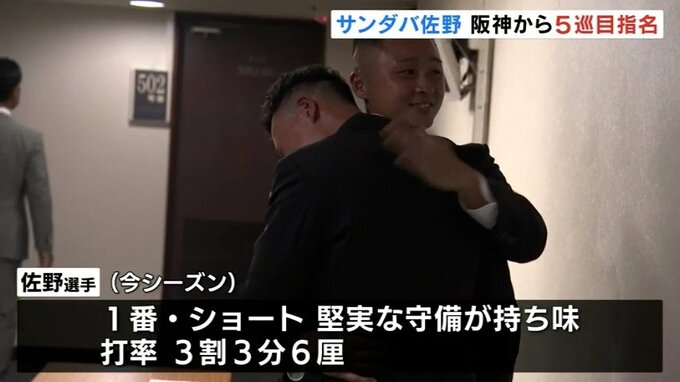 サンダーバーズ佐野大陽選手:「こんなにも早い指名をされると思っていなかったので、正直びっくりしたんですけど、同じ席に座っていたチームメイトや、会場に足を運んでくれたチームの思いも背負ってNPBの舞台で、チームメイトの気持ちも背負ってプレーしたい」