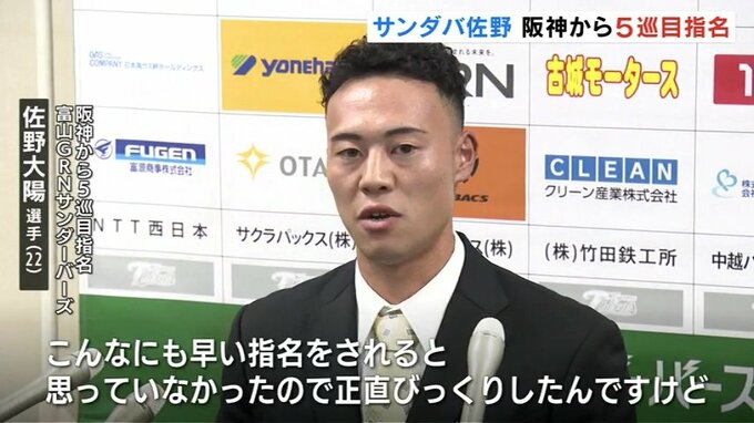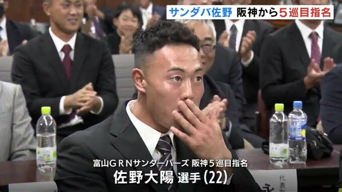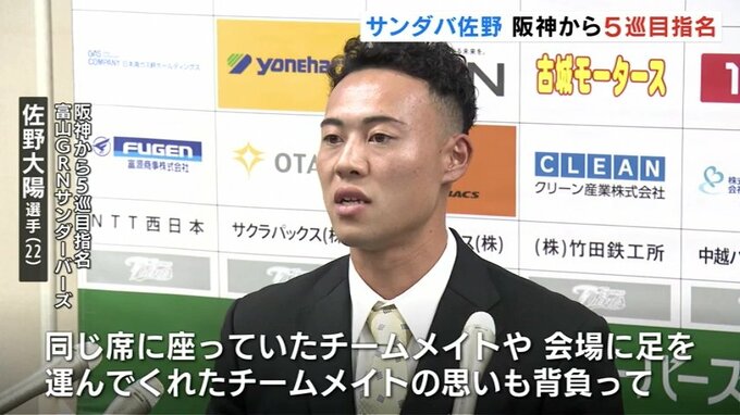 24日に行われたプロ野球ドラフト会議で、富山GRNサンダーバーズの佐野大陽選手が阪神タイガースから5巡目で指名されました。