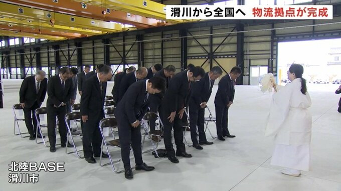 鋼材メーカー「北陸建工グループ」は、全国を視野に入れた大規模な物流拠点を滑川市に整備し、26日に竣工式を行いました。