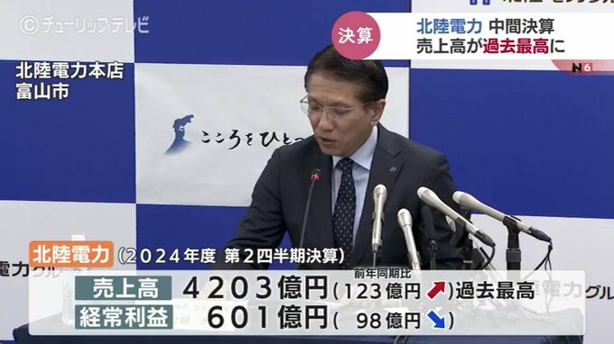 北陸電力の2024年度中間決算は売上高が過去最高を記録し、2年ぶりの増収減益となりました。