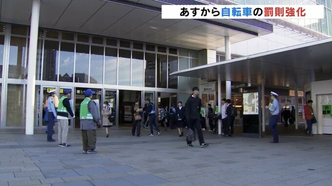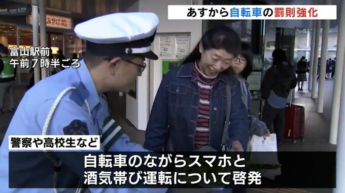 11月から自転車の罰則が強化されることから富山駅では警察などによる啓発活動が行われました。