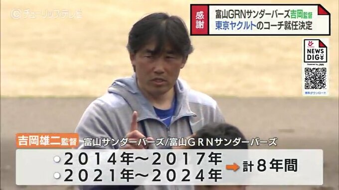 富山GRNサンダーバーズの吉岡雄二監督が東京ヤクルトスワローズのコーチに就任することが決まりました。
