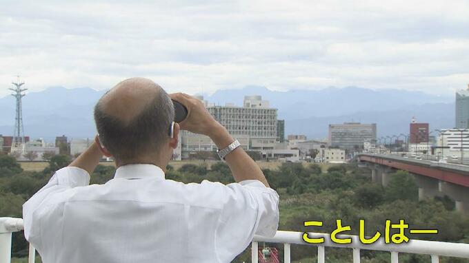 富山地方気象台の大江幸治さんが双眼鏡を向けた先は立山連峰。