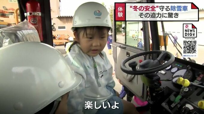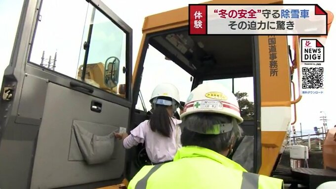 本格的な冬を前に1日、雪国の除雪車を点検する出動式が開かれました。会場には地元の小学生もに乗り込み、なかなか体験できない除雪車の運転席に座ったり、担当者から説明を受けていました。
