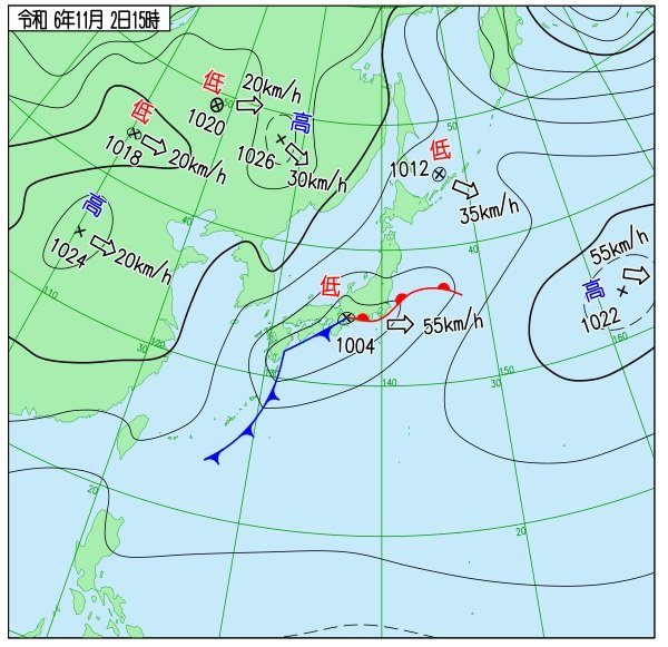 気象庁によりますと、紀伊半島付近には、前線を伴った低気圧があって東へ進んでいます。北陸地方では、広い範囲で雨となっており、2日夕方は強い雨の降る所があるでしょう。