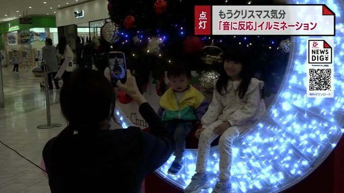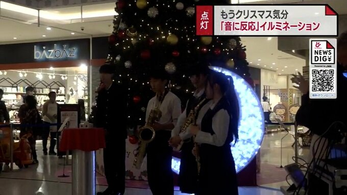 お目見えしたツリーは音を立てると反応して8種類の点灯パターンをみせてくれるということで、多くのお客さんが立ち止まり光の演出を楽しんでいました。