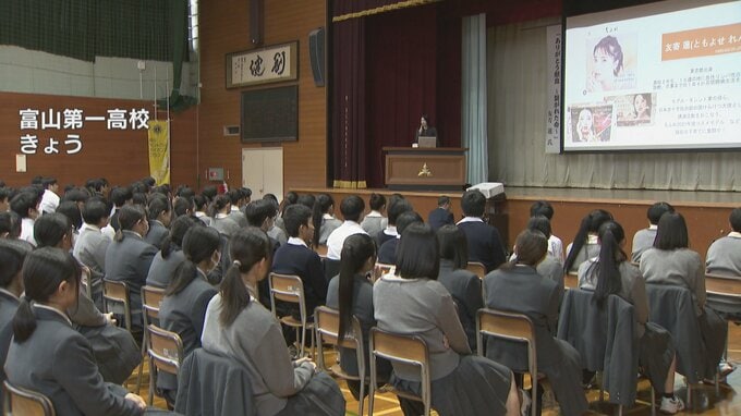 富山市の富山第一高校で5日講演を行ったのはタレントの友寄蓮さんです。