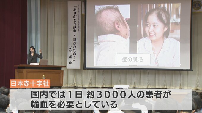 5日は高校生を前に闘病中の経験や献血の重要性などを訴えました。