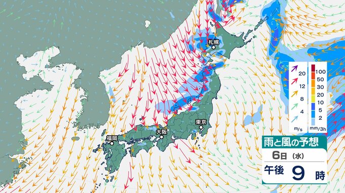 立冬の7日 “強い寒気” 南下へ 本州の山は所々で雪へ【2週間天気】季節が進み風冷え・寒暖差に注意【3時間ごと 雨と風シミュレーション】 2024年11月6日(水) 17:08 国内 暮らし・マネー 3時間ごとの雨と風の動きシミュレーション 6日(水)午後6時~