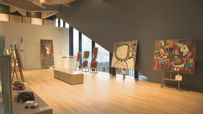 会場には高岡市のシノタケさんの作品や、滋賀県のやまなみ工房81歳の井上さんの作品など障がいのあるアーティストたちの見ごたえのある作品の数々が展示されています。