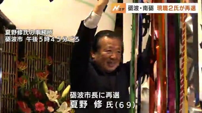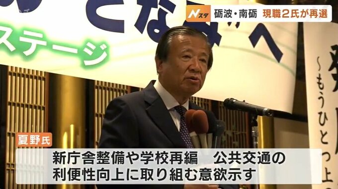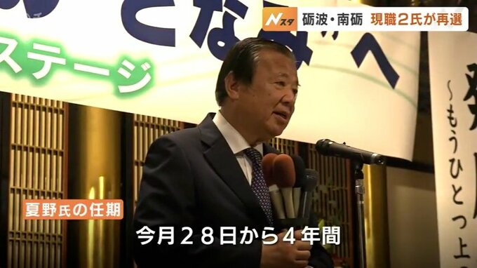 砺波市長に4期目の再選 夏野修氏:「喫緊の課題であります新しい庁舎の整備、中学校の統合整備、地域の交通の最適化、ぶれずに着実にまた前向きに、そういった思いで進めていきたい」