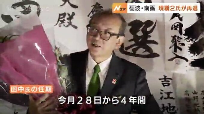 南砺市長に5期目の再選を決めたのは現職の田中幹夫氏です。