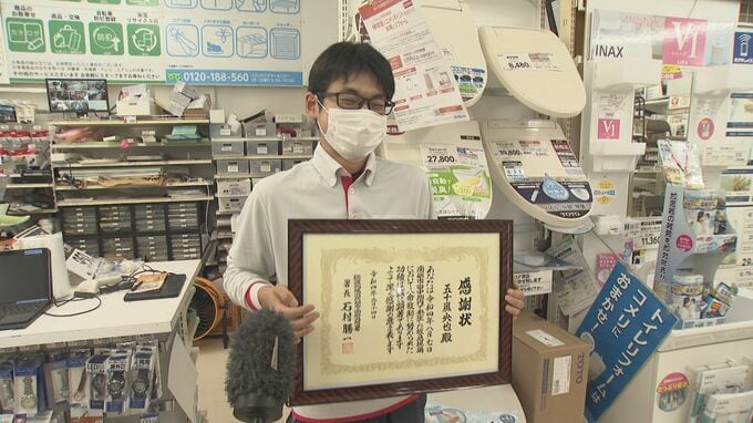 9月14日、南砺消防署は五十嵐さんに感謝状を贈呈。感謝状は額縁に収められ、このあと職場のホームセンター店内に掲示するということです。