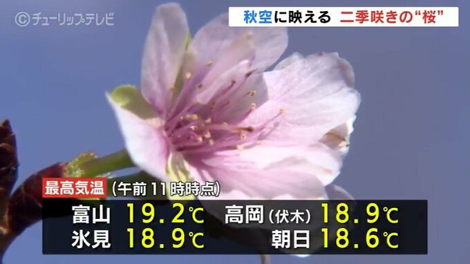 12日の富山県内は朝から青空が広がっています。秋も深まるなか富山市の植物園では二季咲きの「桜」が見ごろを迎えています。