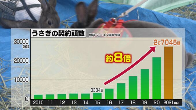 ペット保険などを提供するアニコム損害保険では、保険に契約しているうさぎの数は2016年度以降増加。