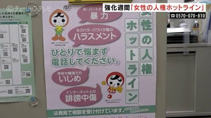 富山地方法務局は「悩みを抱えている女性は1人で悩まず、気軽に相談してほしい」としています。