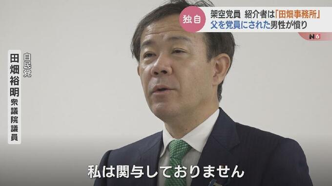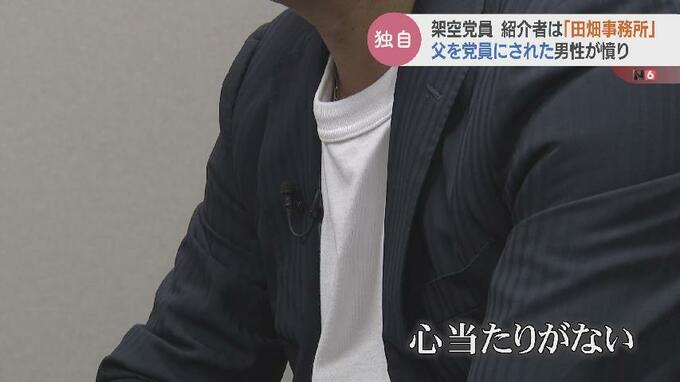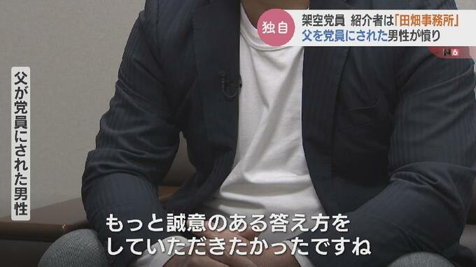 男性や父親に田畑議員側から党員登録を依頼されたことはなく、なぜ田畑事務所で党員登録されたかは心当たりがないといいます。