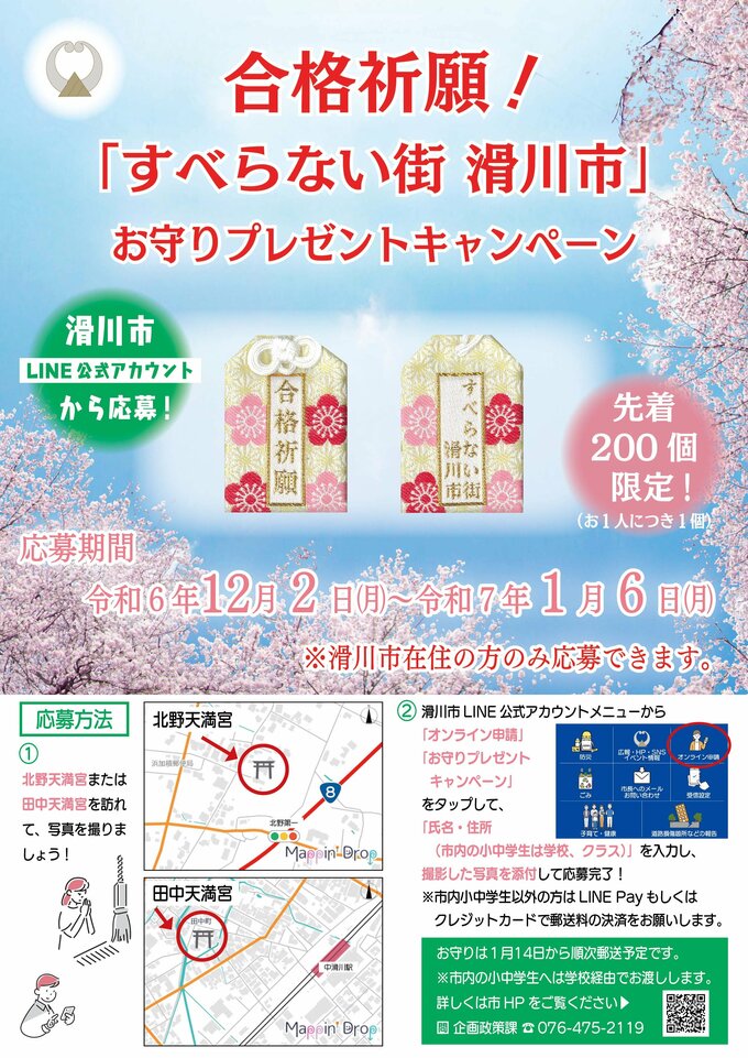 滑川市企画政策課は「滑川市が “すべらない街” として広く打ち出しているとともに、市内の多くの受験生のみなさんが志望校に合格できるよう後押し、応援していきます」とコメントしています。