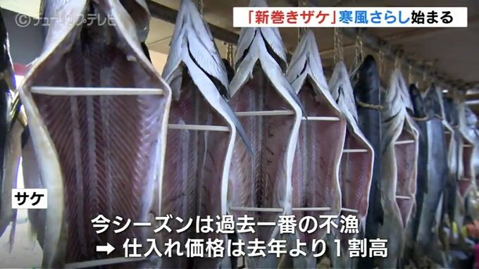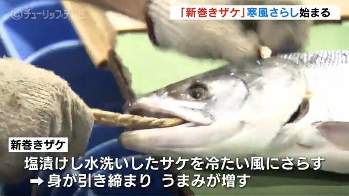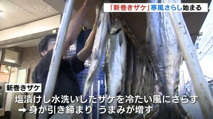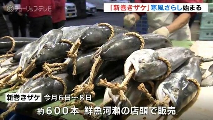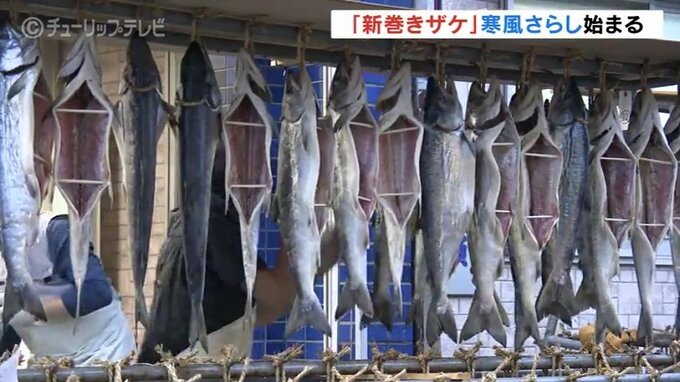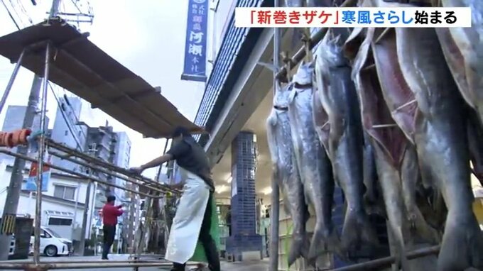 きょうから師走。富山市では長くお歳暮として親しまれている新巻きザケの「寒風さらし」が行われました。