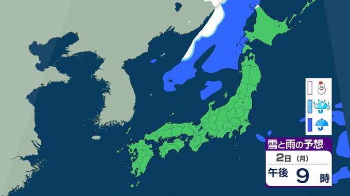 ニュースクリップ 今週末にかけ日本海側で大雪のおそれ シーズン一番の寒気流入か【2週間天気】寒波襲来による大雪への備え早めに【雪と雨のミュレーション】 2024年12月2日(月) 17:06 国内 暮らし・マネー 雪雨シミュレーション2日(月)午後3時~