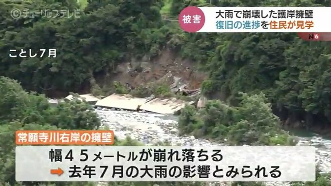 富山県立山町の常願寺川では、2023年7月の大雨で崩落したとみられる護岸擁壁の復旧作業が進められていますが、4日、住民に作業の進捗状況が公開されました。