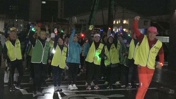 日没が早まっているのに合わせ、夜間の交通事故を減らそうと、警察から配布されたLEDリストバンドをつけた市民ランナーが交通安全を呼びかけています。