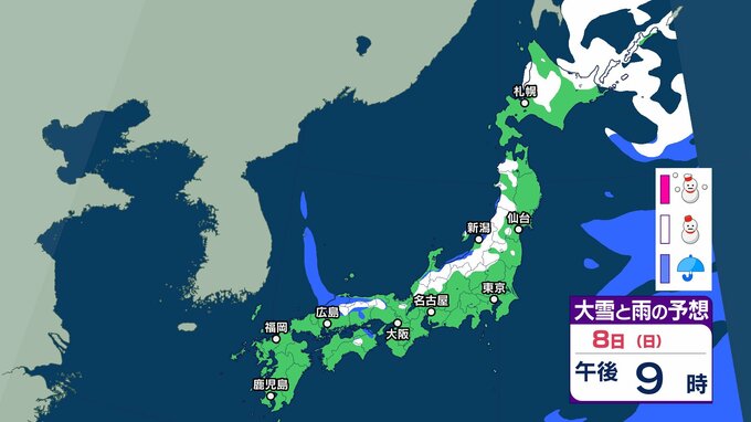ニュースクリップ 冬型の気圧配置強まり寒気のピーク 上空1500メートル付近でマイナス6℃以下【雪と雨 3時間ごとシミュレーション】平地で雪の目安の寒気が一時的に西日本まで南下 2024年12月8日(日) 15:00 国内 暮らし・マネー 大雪と雨のシミュレーション 8日(日)