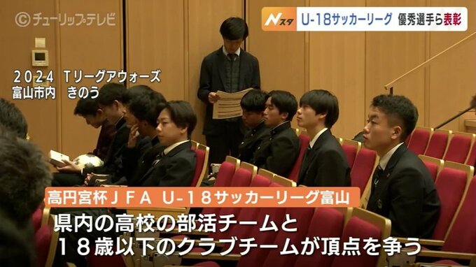 U-18サッカーリーグ富山の優秀選手を称える「Tリーグアウォーズ」が7日富山市で開かれました。