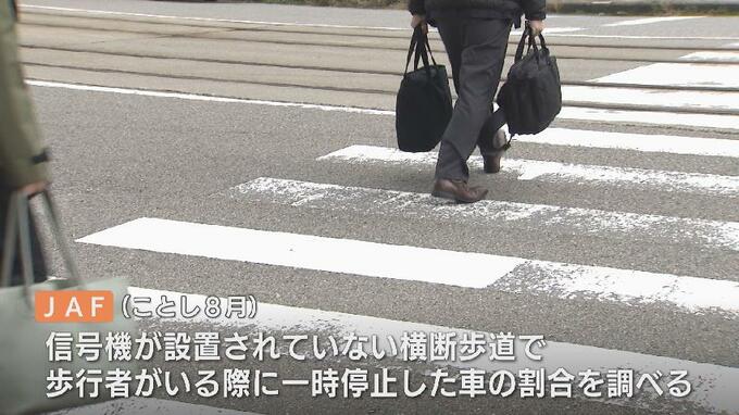 JAFがことし8月に行った調査は、全国の都道府県それぞれ2か所の信号機が設置されていない横断歩道で、歩行者がいる際に一時停止した車の割合を調べたものです。