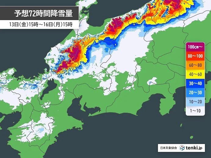 上空で西寄りの風が吹いて、北陸との県境付近で雪の量が多くなるおそれがあります。