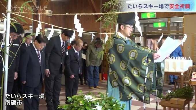 雪質がよく全国的なスキー大会の開催で知られるたいらスキー場の安全祈願祭がきょう行われました。
