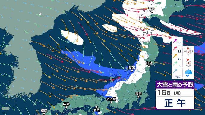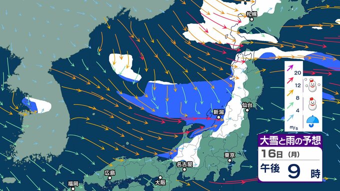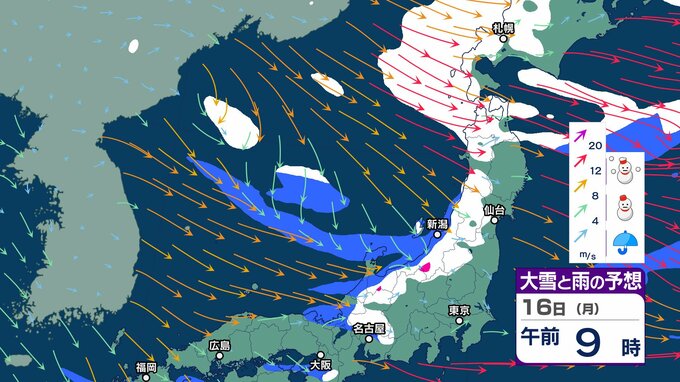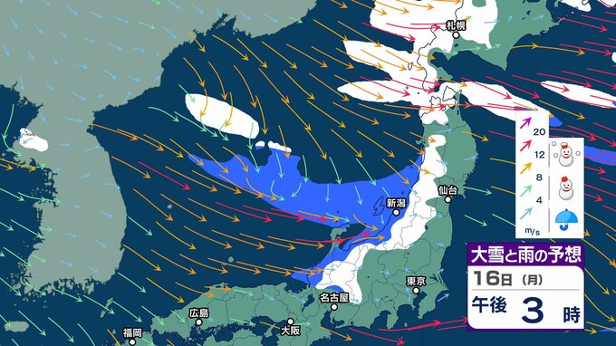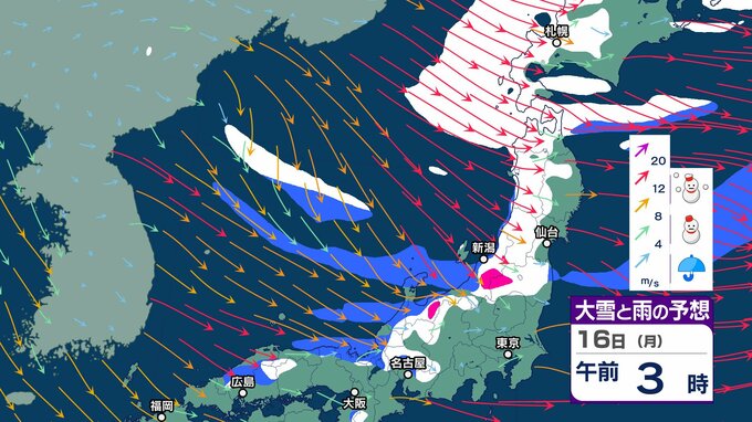 ニュースクリップ 【気象情報 15日正午更新】強い寒気が南下 厳しい寒さ続く 富山県は15日夜から17日にかけ土砂災害に注意・警戒【3時間ごと 雪と雨のシミュレーション】冬型の気圧配置が続く 2024年12月15日(日) 12:49 国内 天気 大雪と雨のシミュレーション 16日(月)