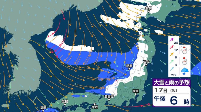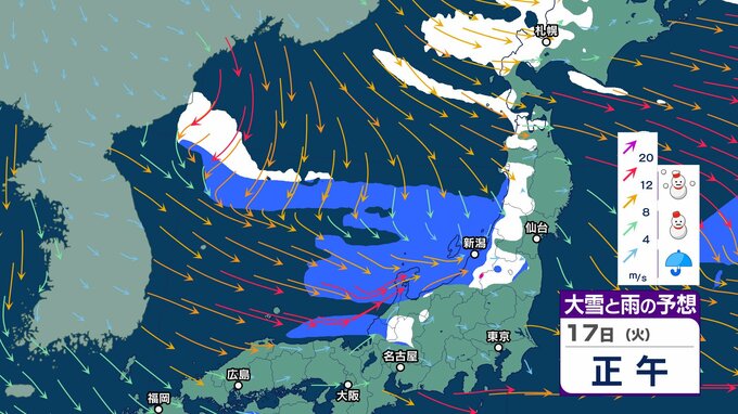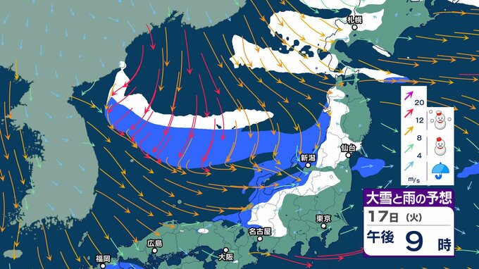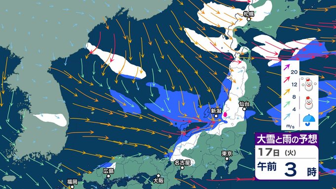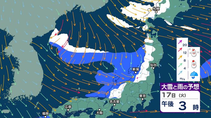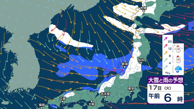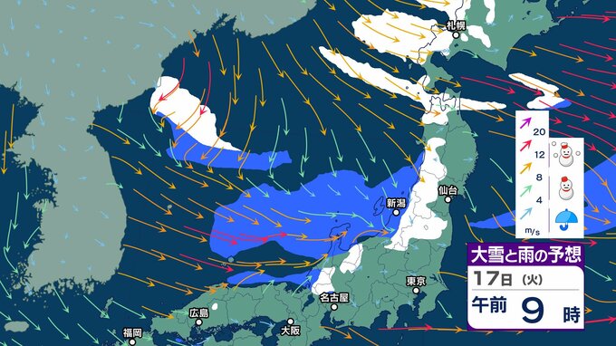 ニュースクリップ 【気象情報 15日正午更新】強い寒気が南下 厳しい寒さ続く 富山県は15日夜から17日にかけ土砂災害に注意・警戒【3時間ごと 雪と雨のシミュレーション】冬型の気圧配置が続く 2024年12月15日(日) 12:49 国内 天気 大雪と雨のシミュレーション 17日(火)