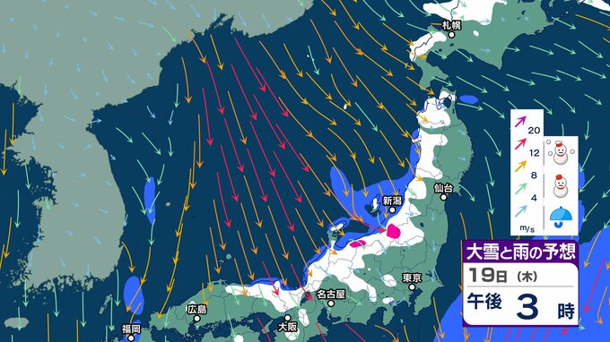 ニュースクリップ 【気象情報 16日午前7時更新】北陸地方 17日にかけてうねり伴う高波に注意【3時間ごと 雪と雨のシミュレーション】 2024年12月16日(月) 07:00 国内 天気 大雪と雨のシミュレーション 19日(木)
