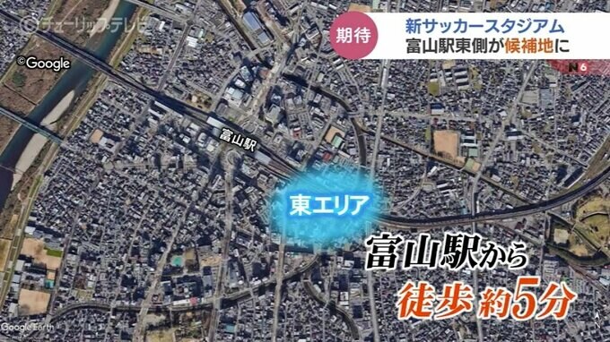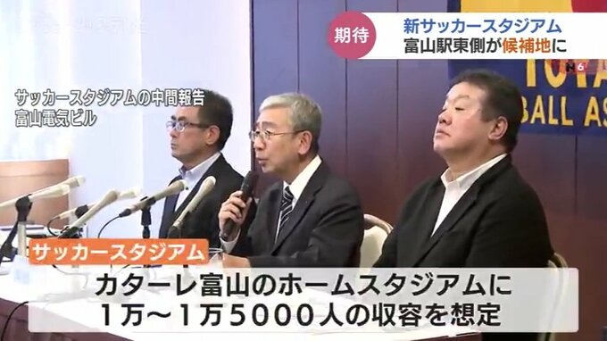 富山初のサッカー専用スタジアムの建設構想について県サッカー協会などでつくる特別委員会は16日、新たに富山駅の東エリアを候補地とする計画を発表しました。