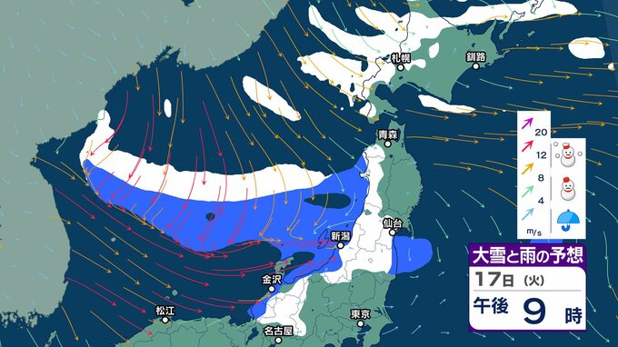 ニュースクリップ 18日にかけ日本海の帯状の雨雲が次々と流入…北陸の平地は断続的な雨【雪と雨のシミュレーション 3時間ごと】北陸上空に強い寒気が流れ込み 大気の状態は非常に不安定へ 2024年12月17日(火) 16:09 国内 天気 大雪と雨のシミュレーション 17日(火)