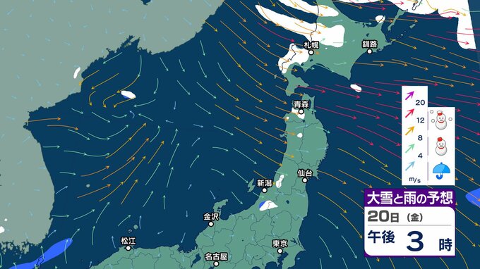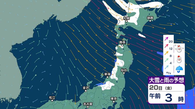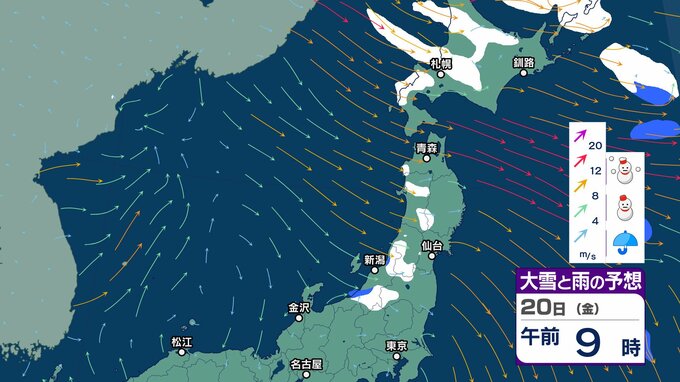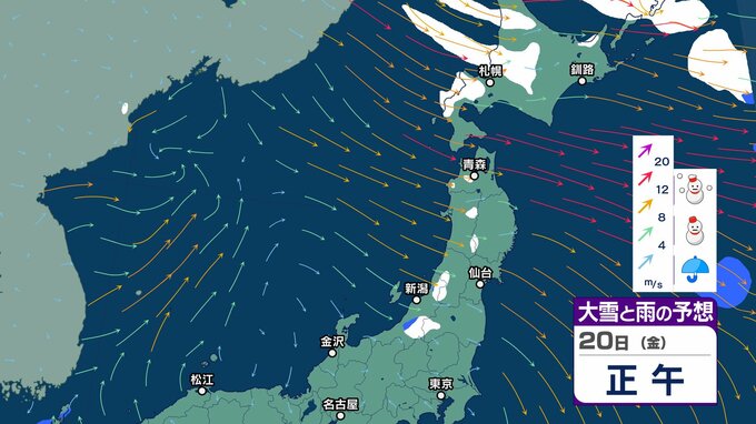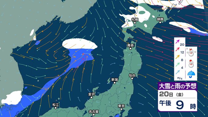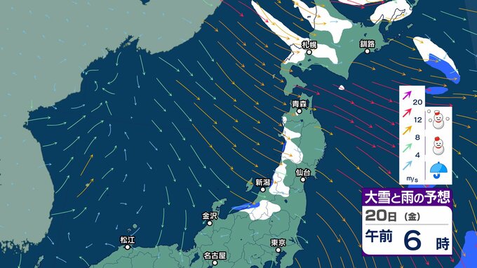 ニュースクリップ 【気象情報 18日午前8時半更新】日本海側の約5500メートル上空に氷点下36度以下の強い寒気【雪と雨のシミュレーション】19日にかけ落雷や竜巻、ひょう、急な強い雨に注意 2024年12月18日(水) 08:54 国内 天気 大雪と雨のシミュレーション 20日(金)