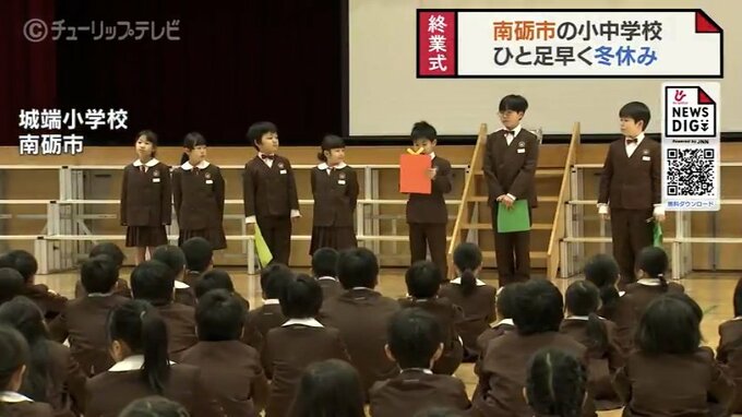 ニュースクリップ 「冬休みは公民館で餅つき」2学期終業式、ひと足早く冬休みスタート 富山・南砺市の小学校 2024年12月20日(金) 20:44 国内 南砺市の小中学校では、一足早く2学期の終業式が行われ、冬休みがスタートしました。このうち城端小学校では終業式で高田篤志校長が「家や地域で進んで行動して、始業式を迎えましょう」と話しました。城端小学校は…