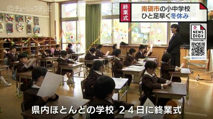 南砺市の小中学校では、一足早く2学期の終業式が行われ、冬休みがスタートしました。