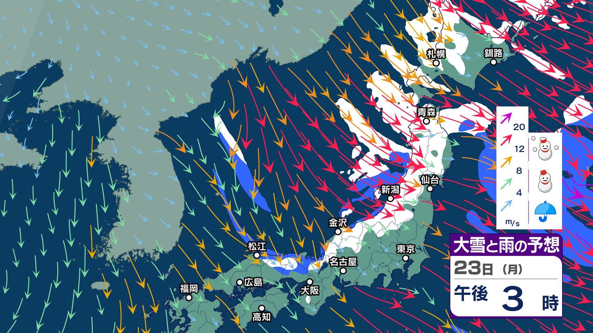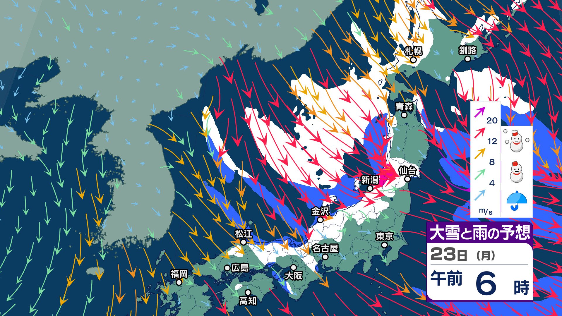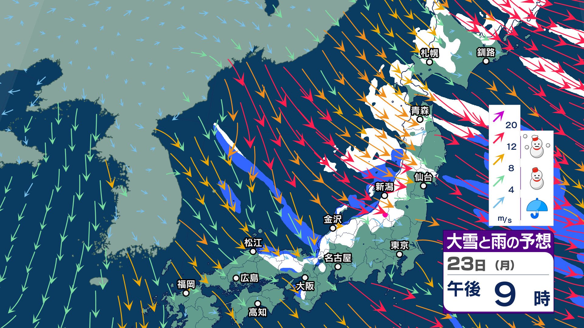ニュースクリップ 【関東甲信気象情報】警報級の大雪となる可能性も 長野県と関東地方北部であすからあさってにかけて大雪となる見込み 積雪や路面の凍結による交通障害に注意・警戒を【 雪と雨のシミュレーション】 2024年12月21日(土) 08:01 国内 天気 大雪と雨のシミュレーション 23日(月)