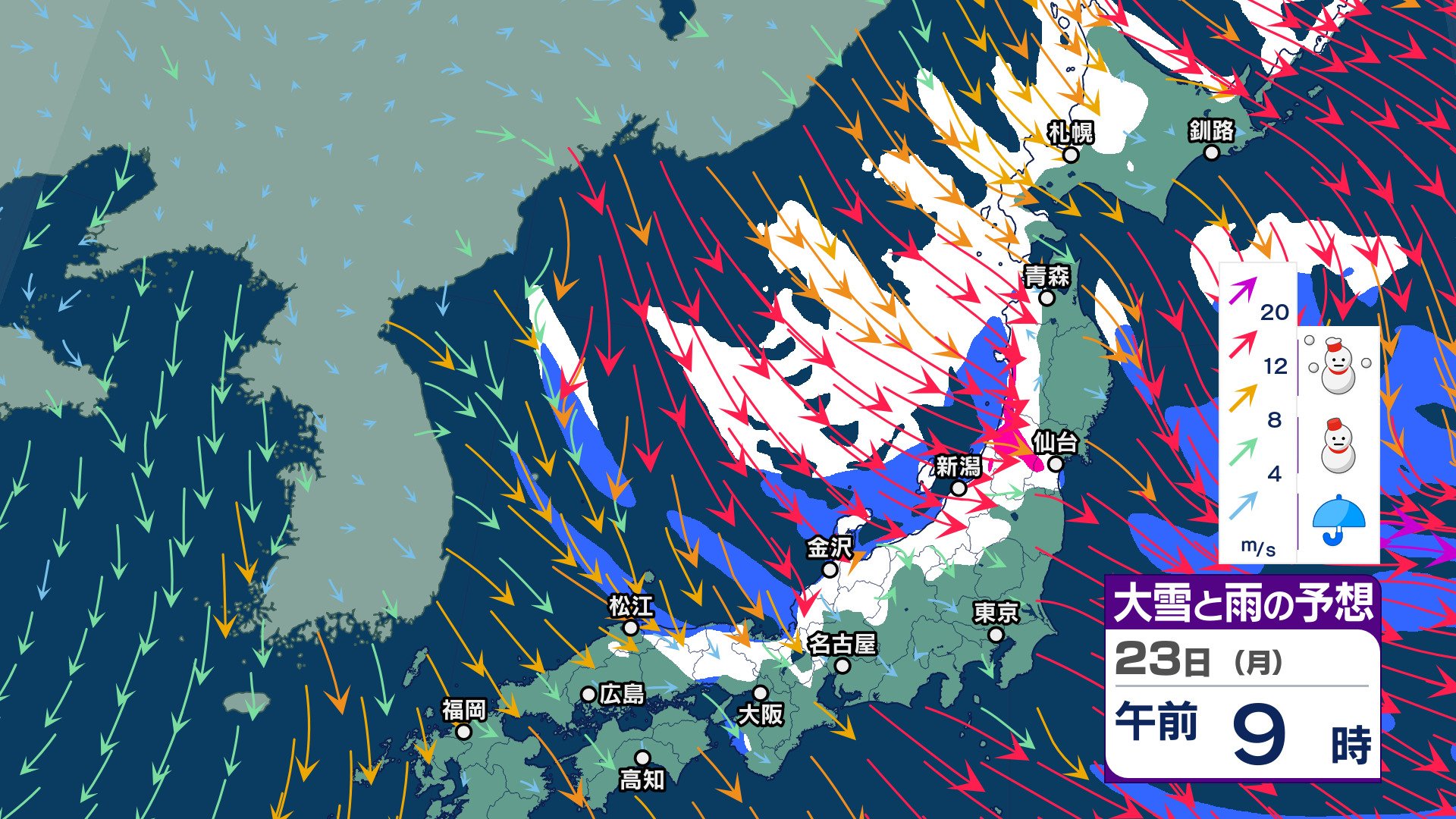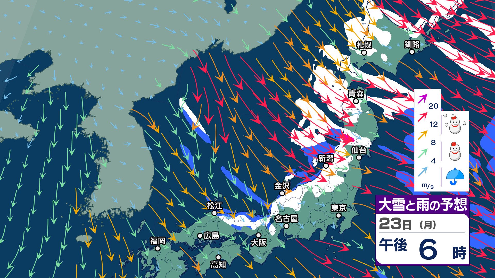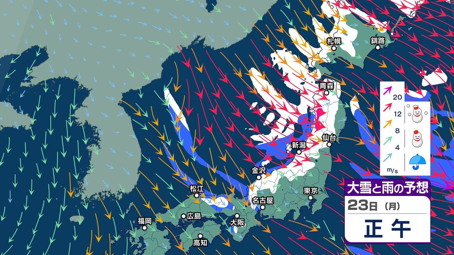 ニュースクリップ 【関東甲信気象情報】警報級の大雪となる可能性も 長野県と関東地方北部であすからあさってにかけて大雪となる見込み 積雪や路面の凍結による交通障害に注意・警戒を【 雪と雨のシミュレーション】 2024年12月21日(土) 08:01 国内 天気 大雪と雨のシミュレーション 23日(月)
