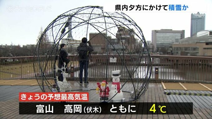 また日中も気温がほとんど上がらず予想最高気温は富山、高岡市の伏木ともに4℃と、真冬並みの寒さとなりそうです。