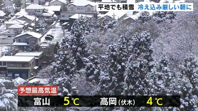 また、日中の予想最高気温は、富山で5℃、高岡市の伏木で4℃と、22日に続いて真冬の並みの寒さとなりそうです。